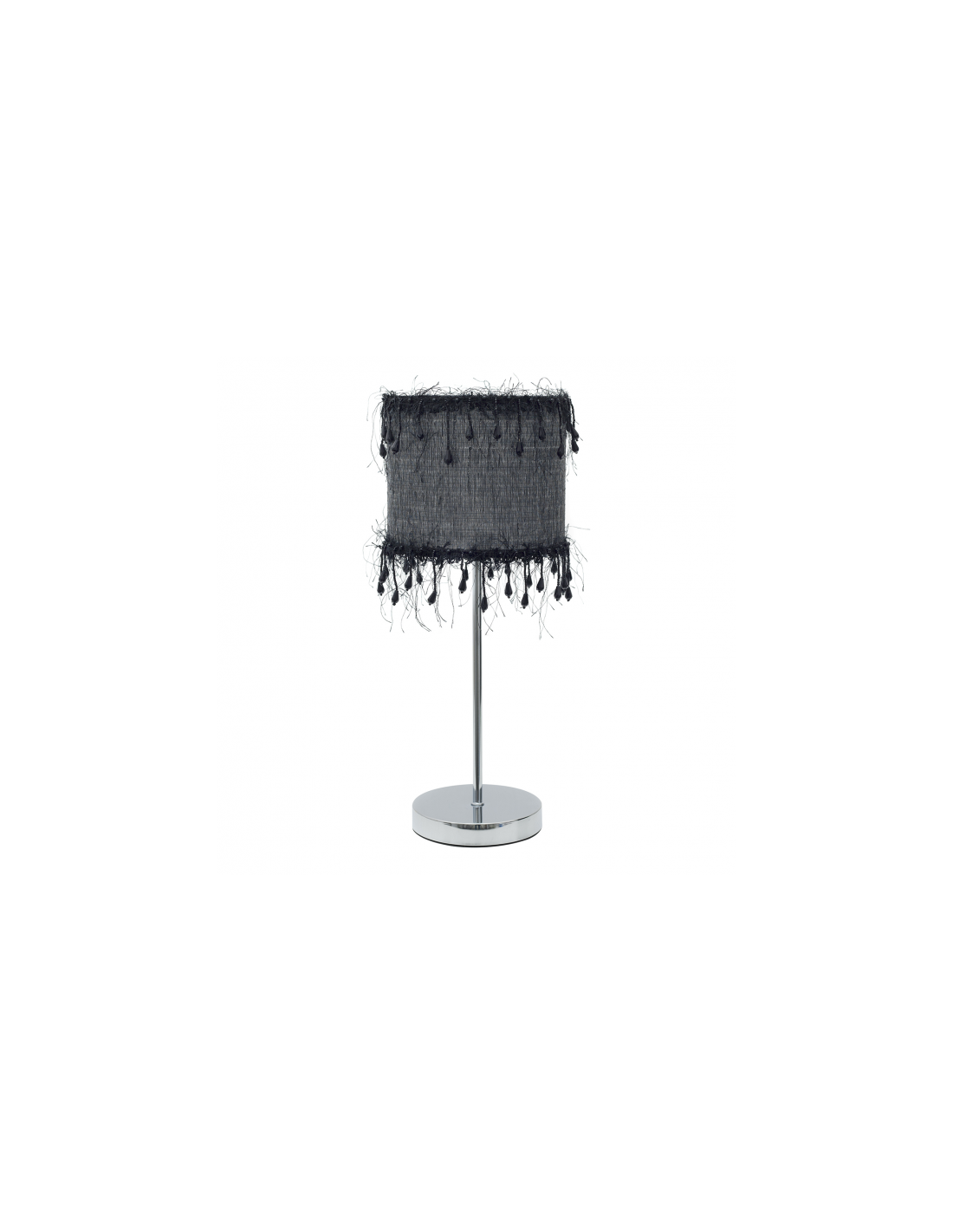 Sobremesa de la serie HILOS de color NEGRO. La pantalla se caracteriza por una decoración de pasamanería de color negro, creando así un contraste entre detalle y tejido. Es perfecto para ambientar espacios con cierto toque vintage. Se puede completar la serie con el colgante de 50 y 40 cm en color beis. Posee un portalámparas E14. Bombilla no incluida. Tiene unas dimensiones de 42,5x17x17 centímetros.