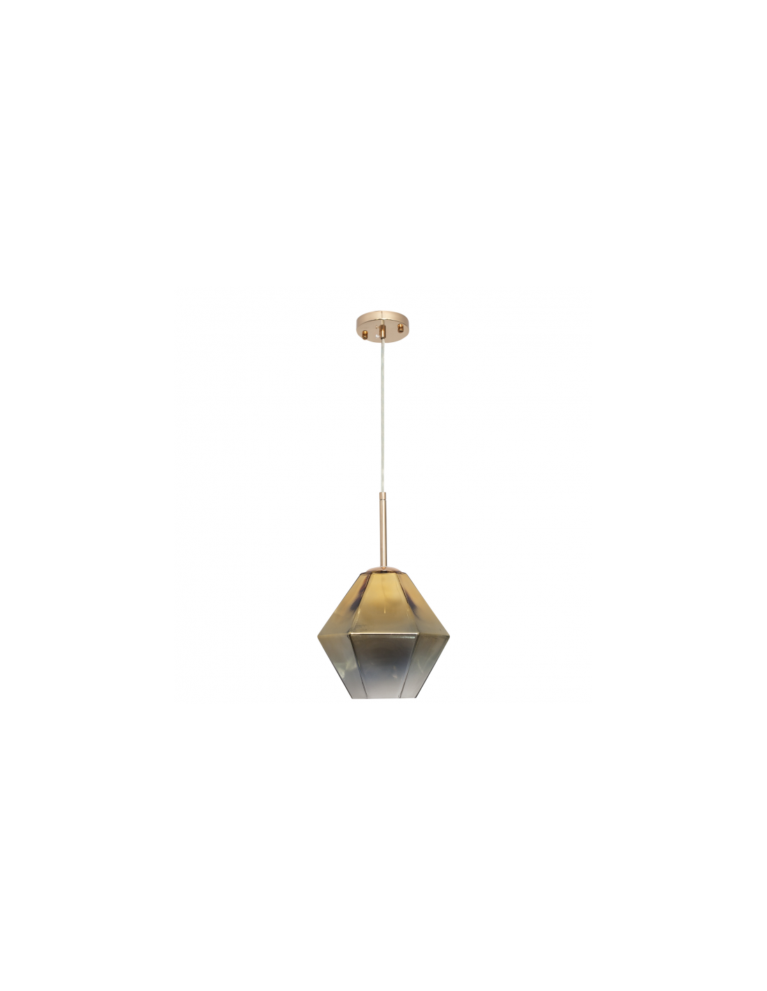 Colgante serie Zia de color dorado. Está realizado en metal y cristal ahumado de color oro. Es ideal para salones o ambientes decorados en estilo vintage y moderno. Sus dimensiones son 50<,160x23x23 cm y su peso neto 1150 g. También está disponible en color cromo.