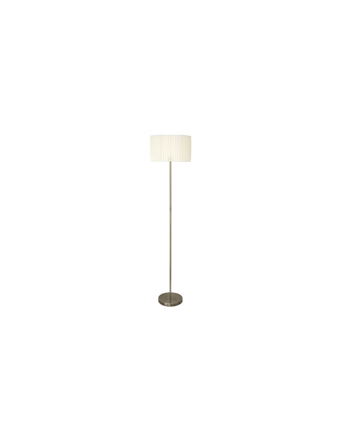 Pie de salón serie Durango de color cuero con pantalla beis. Realizada en metal y material textil. Los portalámparas son E27 y sus dimensiones 162 x37x37 cm. Está disponible en color cromo con pantalla blanca, sobremesa y lámpara de cinco y tres luces en ambos colores.
