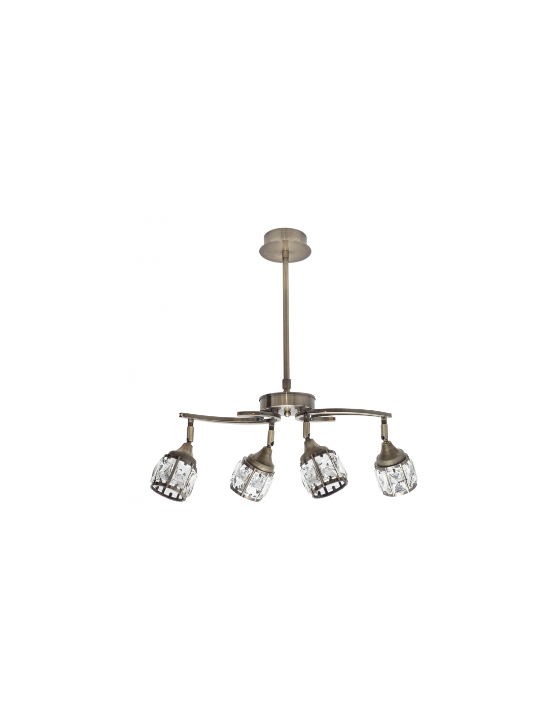 Lámpara de cuatro luces serie Catania de color cuero. Posee led integrado con una potencia de 5W por portalámparas, 1600 lúmenes y 4000º k de color de luz blanca neutra. Sus dimensiones son 53<,80x46x22 cm con altura regulable. Disponible también en color cromo.