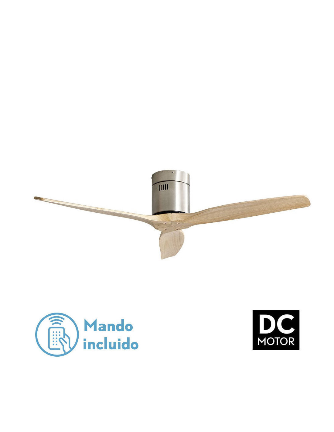 Ventilador Dc Aguilon Niquel 3 Aspas Haya 5 Velocidades Sin Luz Remoto Y Temporiz.132d