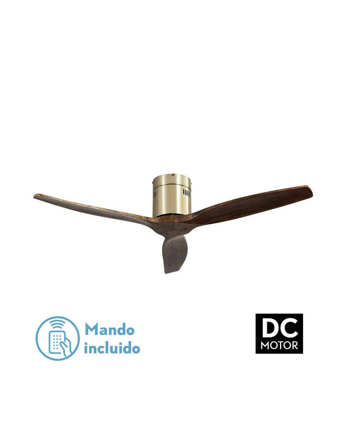 Ventilador Dc Aguilon Cuero 3 Aspas Roble 5 Velocidades Sin Luz Remoto Y Temporiz.132d