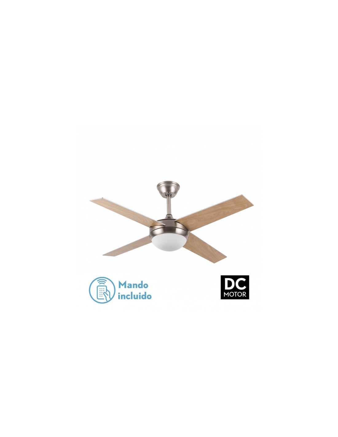 Ventilador DC serie CIRO de color BLANCO con 4 aspas REVERSIBLES color BLANCO. Realizado de metal, MDF y cristal. Tiene una medida de 35/45x116,8x116,8 centímetros. Posee 2 portalámparas E27 (bombillas no incluidas). Contiene control remoto con 6 velocidades diferentes, modo de verano/invierno y temporizador de 1 hasta 8 horas. Incluye dos tijas de 15 y...