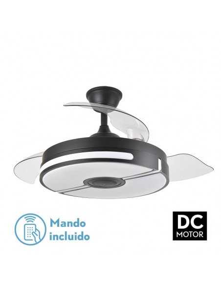 Ventilador Dc Tondela 72w 6120lm Negro/blanco Bluethooth 32/47x50/107d.3Aspas Desp. 6Vel. 3Color. Remoto+Altavoz+Temp+Memoria