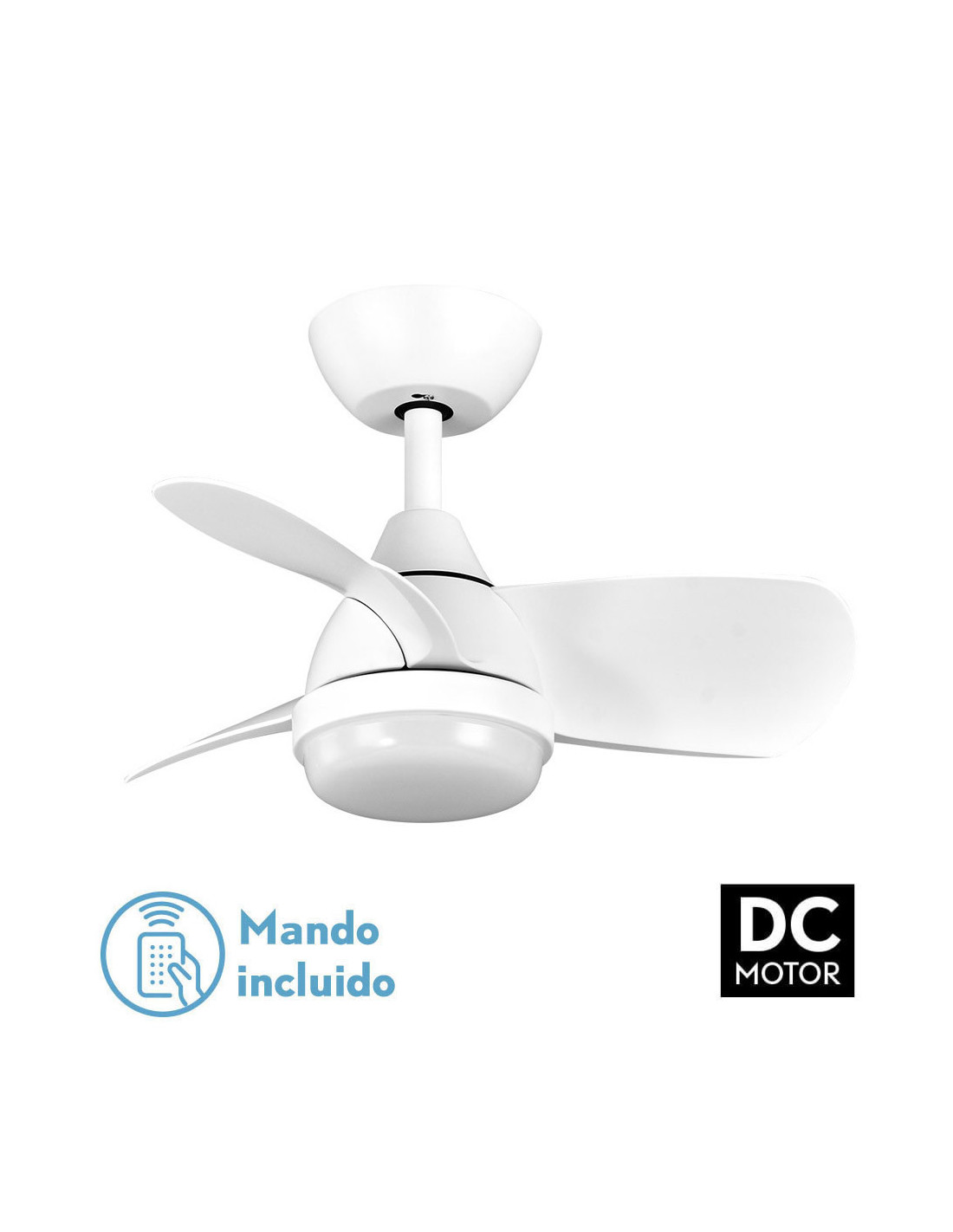 Ventilador DC serie PIRDO realizado en metal, ABS y policarbonato, en color BLANCO con tres aspas. Motor DC. Tiene seis velocidades ajustables. Tecnología LED INTEGRADA con una potencia de 24W, con 3 TEMPERATURAS DE LUZ (3000-4500-6000K), luz cálida, blanco natural y blanco frío, y 2400 lúmenes. De diseño moderno, con líneas sencillas, pero muy decorativo por su estructura compacta, ideal para dormitorios y habitaciones juveniles. Su medida es de 35/47x60x60 centímetros, con dos medidas de tija para instalar a diferentes alturas. Control de aire verano o invierno. MANDO A DISTANCIA INCLUIDO con MEMORIA DE COLOR y TEMPORIZADOR 1/2/4/8 H. Modelo también disponible en blanco/haya cuero/negro, negro/marrón y en negro.