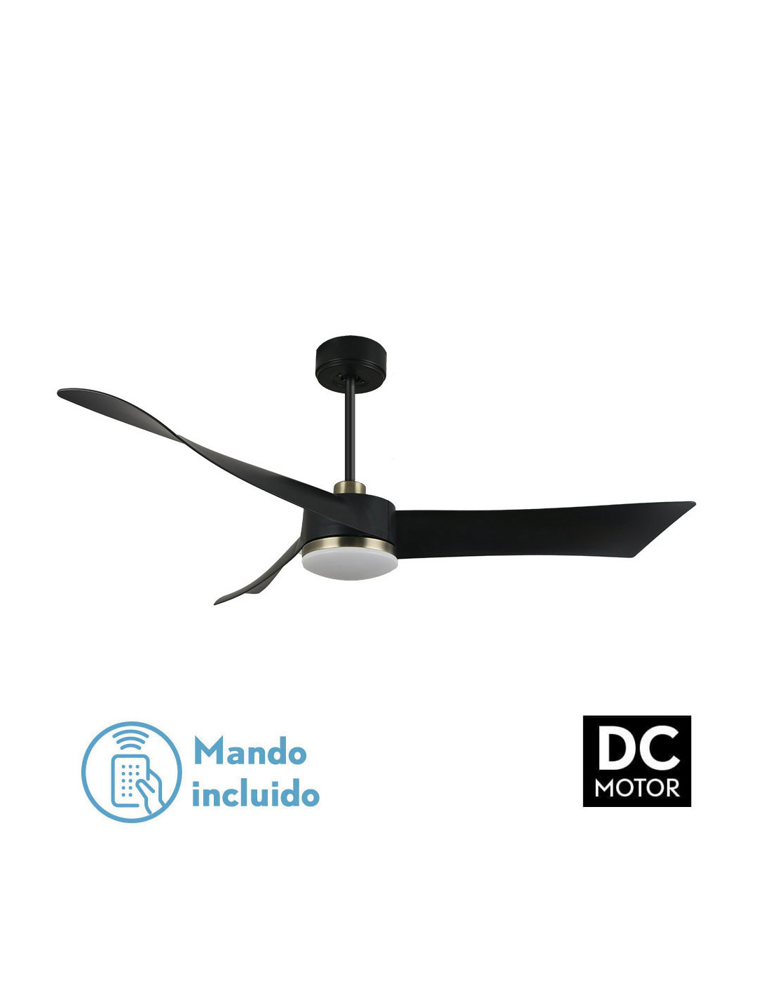 Ventilador Dc Tempel 26w Negro/cuero 3 Aspas 132d 6vel. 3 Colores 2950lm C/remoto, Memoria Y Temporizador