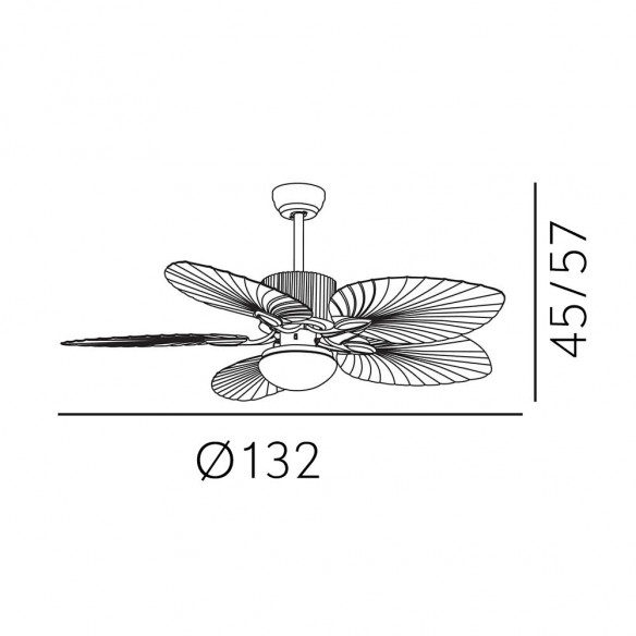 Ventilador COLLA realizado en metal, policarbonato y cristal, en color NEGRO con cinco aspas de diseño HOJA DE PALMA TROPICAL de color MARRON. Tiene tres velocidades ajustables. Tecnología LED incorporada con una potencia de 24W, con 3 TEMPERATURAS DE LUZ( 3000-4000-6000K) y 2950 lúmenes. Su medida es de 45/57X132X132 centímetros, viene con DOS MEDIDAS DE TIJA, lo que permite adaptarlo a distintas alturas de techo. Control de aire verano o invierno. Mando a distancia INCLUIDO con MEMORIA DE COLOR incorporada y TEMPORIZADOR 1/2/4/8.
