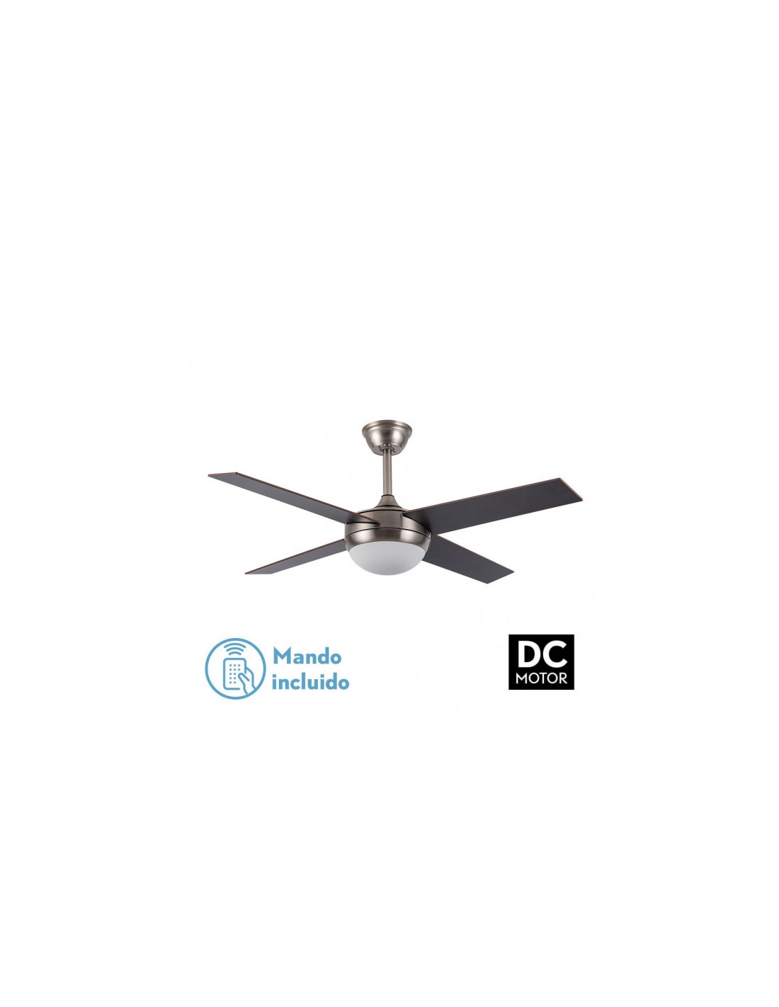 Ventilador DC serie CIRO de color BLANCO con 4 aspas REVERSIBLES color BLANCO. Realizado de metal, MDF y cristal. Tiene una medida de 35/45x116,8x116,8 centímetros. Posee 2 portalámparas E27 (bombillas no incluidas). Contiene control remoto con 6 velocidades diferentes, modo de verano/invierno y temporizador de 1 hasta 8 horas. Incluye dos tijas de 15 y...