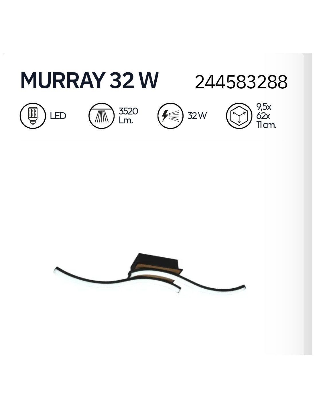 Plafón de la serie MURRAY en color NEGRO/MADERA. Realizado en metal, aluminio y acrílico. De diseño futurista muy moderno a la par que elegante, se aprecian dos ondas de luz sobre una pletina en madera. Ideal tanto para salas, salones y dormitorios como para cocinas y espacios de trabajo, dando sensación de profundidad, iluminan a la vez que decoran la estancia, el diseño de luces que presentan lo hacen el centro de la habitación que iluminan. Posee tecnología LED INTEGRADA, proporcionando un gran ahorro, con una potencia de 32 vatios y 3520 lúmenes, con TRES TEMPERATURAS SELECCIONABLES DE LUZ, 3000-4000-6500ºK (luz cálida, natural y blanco frío) pudiendo elegir en cada momento la que mejor se adapte a la actividad a realizar. Viene con MANDO A DISTANCIA incluido, REGULABLE EN INTENSIDAD y MEMORIA de color. Tiene unas dimensiones de 9,5x62x11 centímetros. Disponible en esta serie con tres diseños diferentes y todos en blanco/haya o en negro/madera, para elegir las combinaciones que mejor se adapten a su decoración.