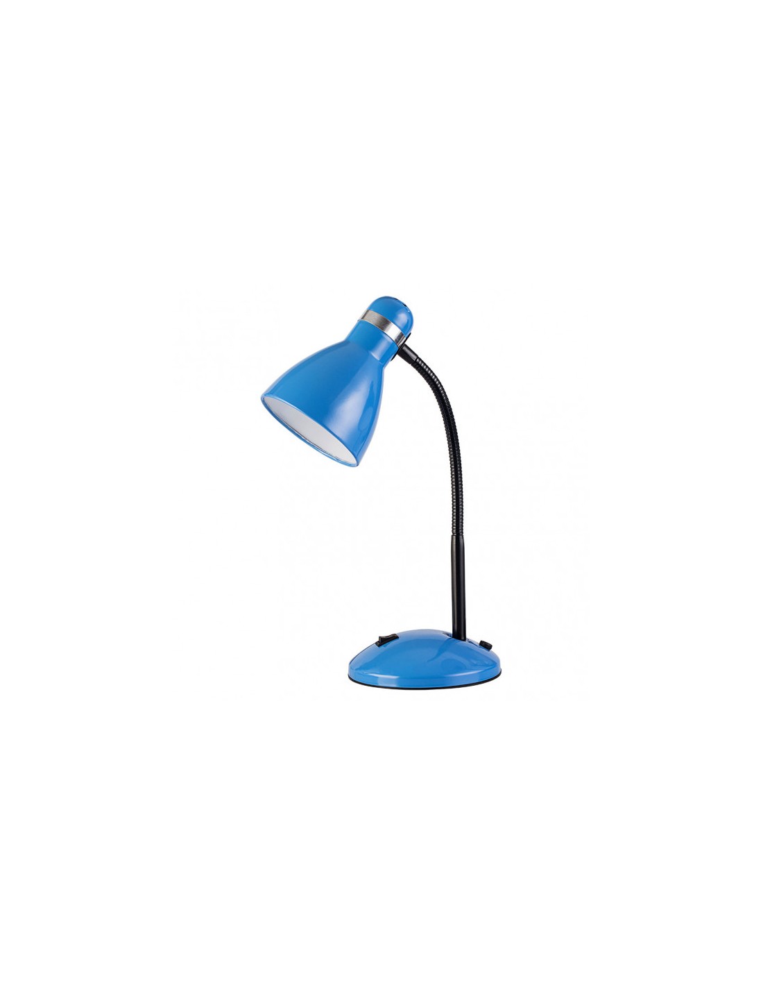 Flexo de la serie LAZULITA de color AZUL. De diseño sencillo realizado en metal con interior de la cabeza en color blanco y detalle en cromado. Con brazo flexible, lo que hace posible orientarlo hacia el punto donde se necesita la luz directa. Posee un portalámparas E27. Bombilla no incluida. Es ideal para pequeños escritorios o mesillas. Modelo también disponible en color rojo, negro, verde, rosa y en blanco.