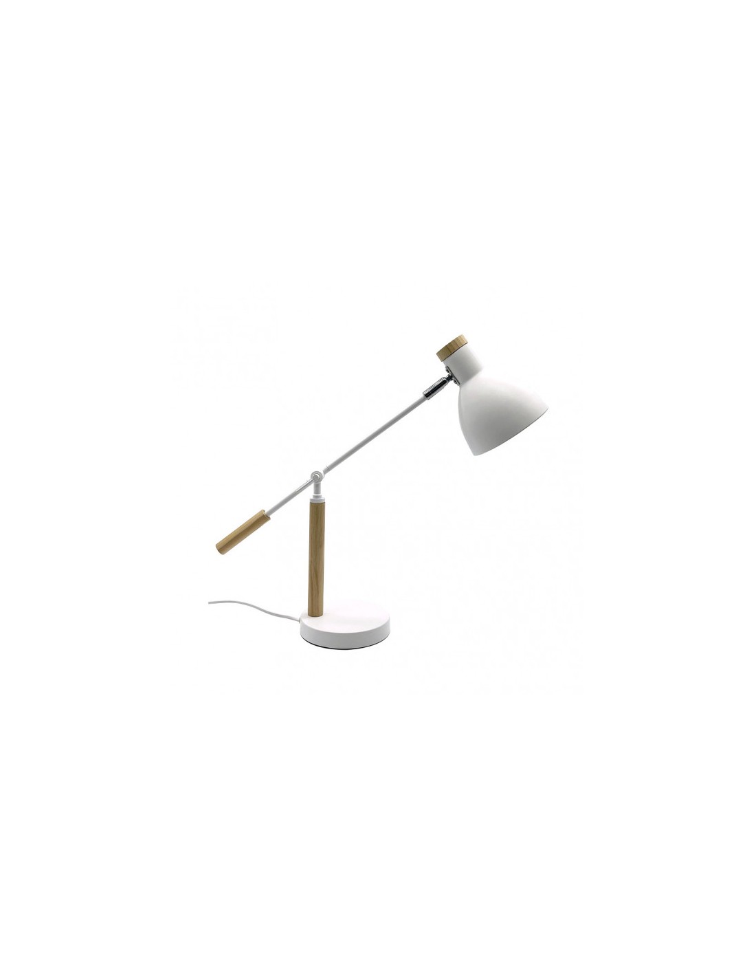 Flexo de la serie BIEL de color BLANCO/HAYA. Realizado en metal y madera, con cuerpo articulable y cabeza orientable hasta 360º, pudiendo dirigir la luz al punto que desee. Bonito juego de materiales y diseño moderno, ideal para darle un toque vintage o rústico a su escritorio. Sus dimensiones son 48x15x50 centímetros. Tiene un portalámparas es E27. Bombilla no incluida. Disponible en esta serie el Pie de Salón y el flexo a juego, también en color negro/haya .