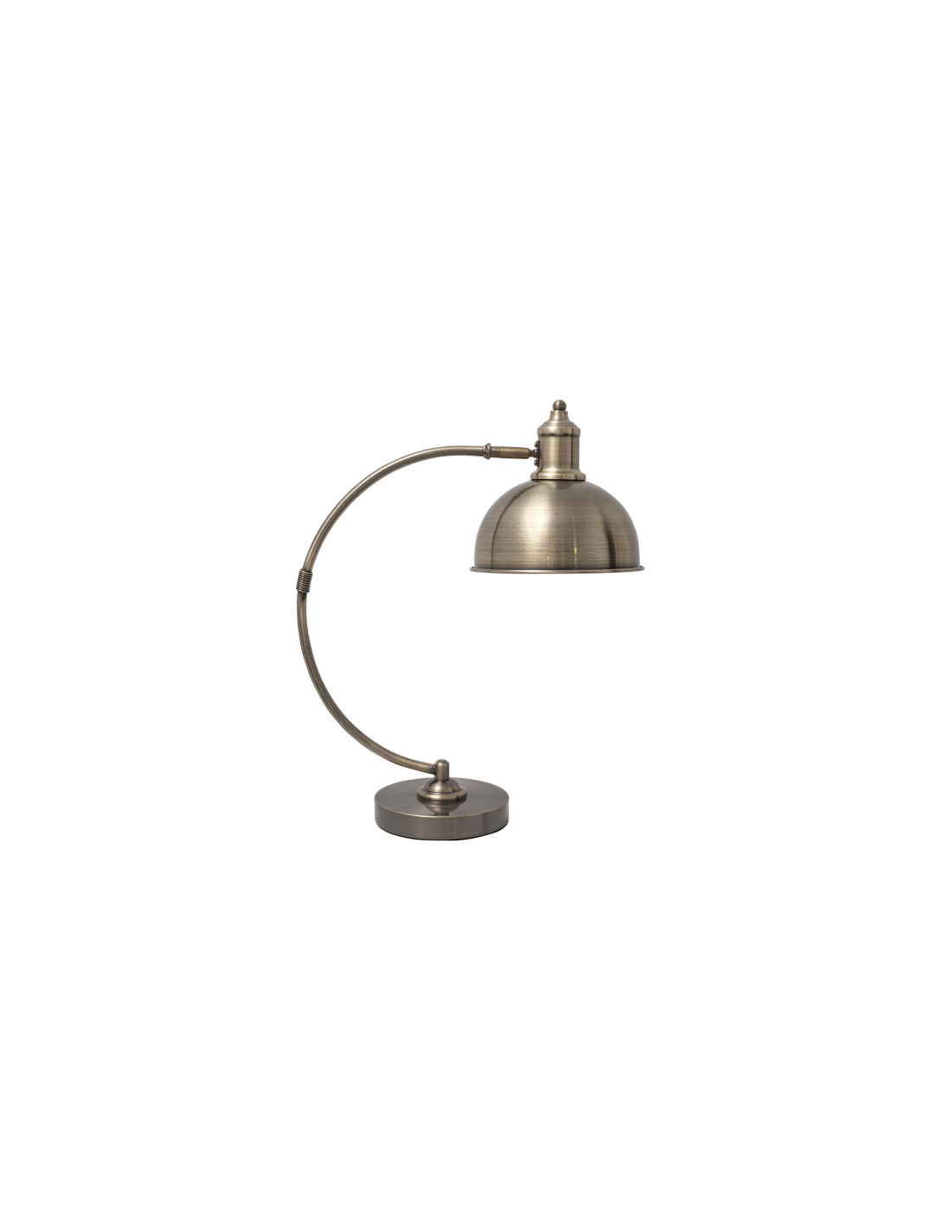 Flexo pequeño serie LUJAN de color CUERO. Realizado en metal con portalámparas E27. Bombilla no incluida. Presenta un cuerpo curvo que le da un carácter muy decorativo. Sus dimensiones son 46x15x36 cm.  Está disponible también en color negro/cromo y blanco/cromo.