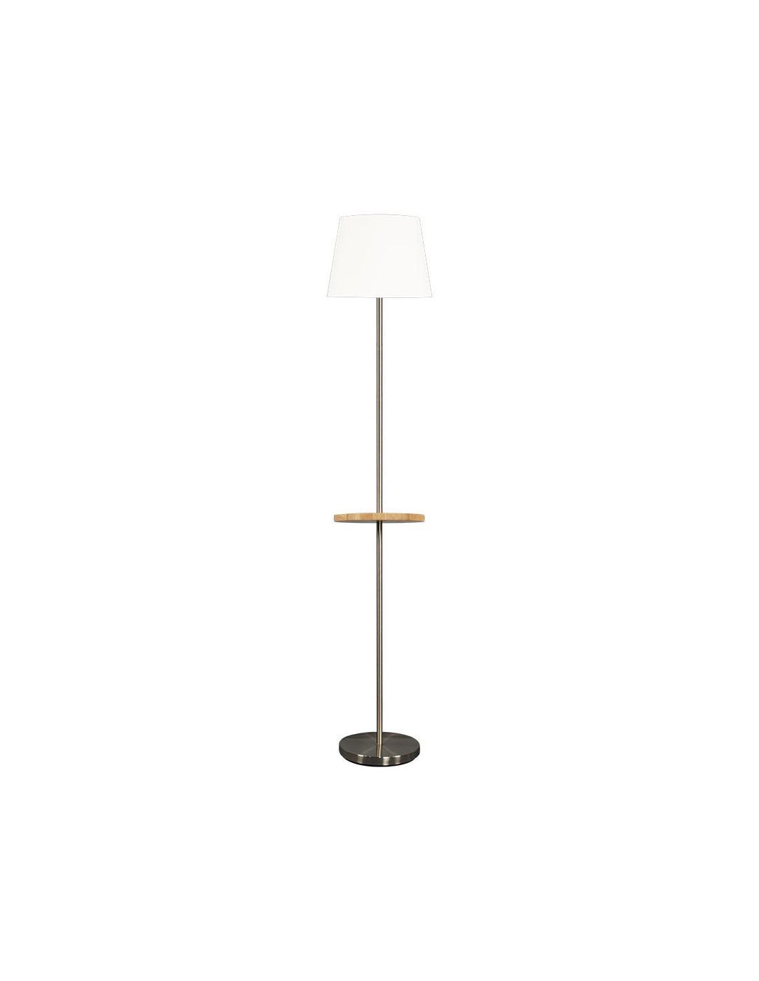 Pie Salon Acero 1xe27 Cuero C/pantalla Beis C/mesita Aux. Incorporada 168x30x30 Cm