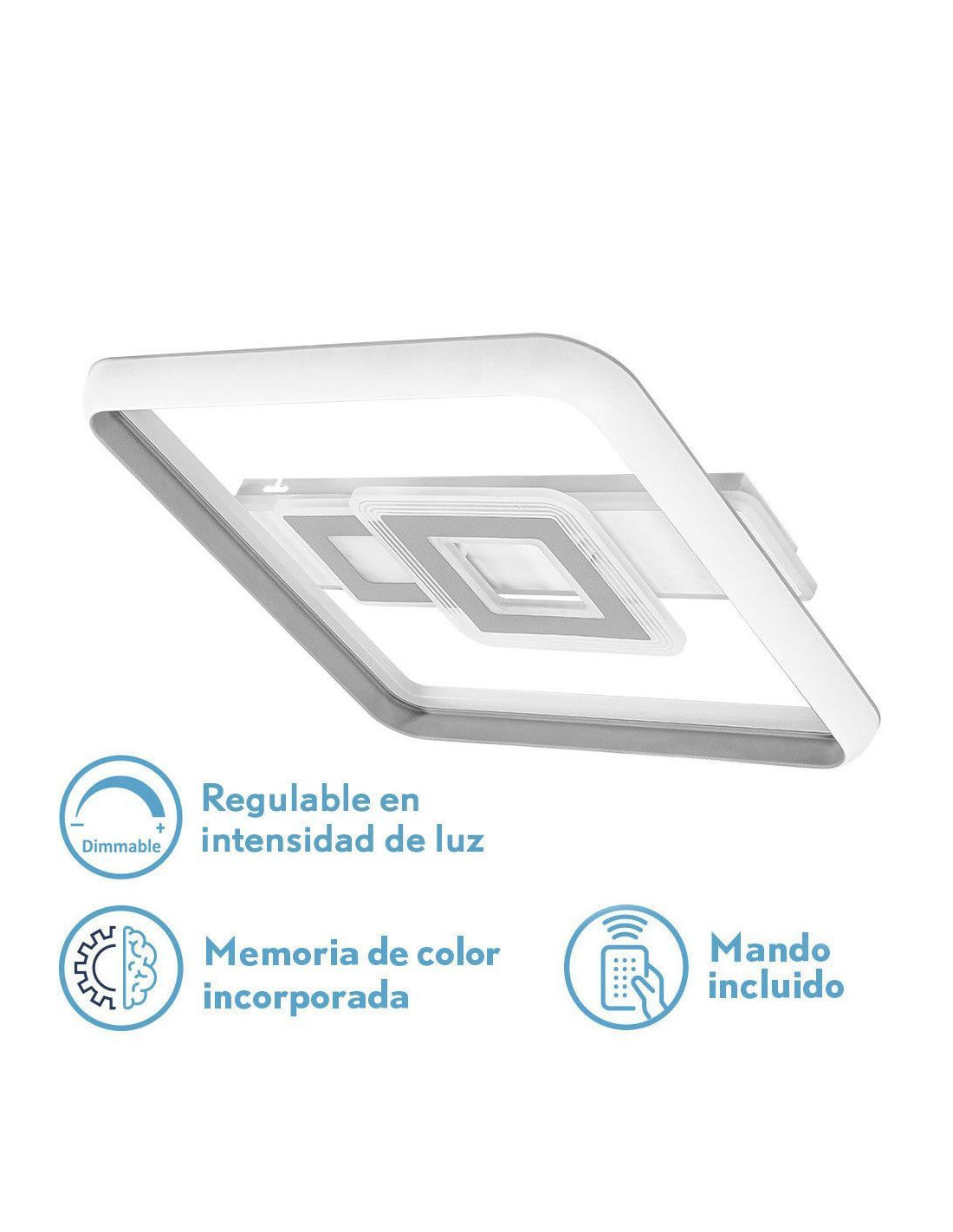 Plafon 80w Sucre 3000-4000-6500k Blanco/gris Cuadrado 7x51x51 Cm 7600lm Reg.intens. C.remoto Y Memoria