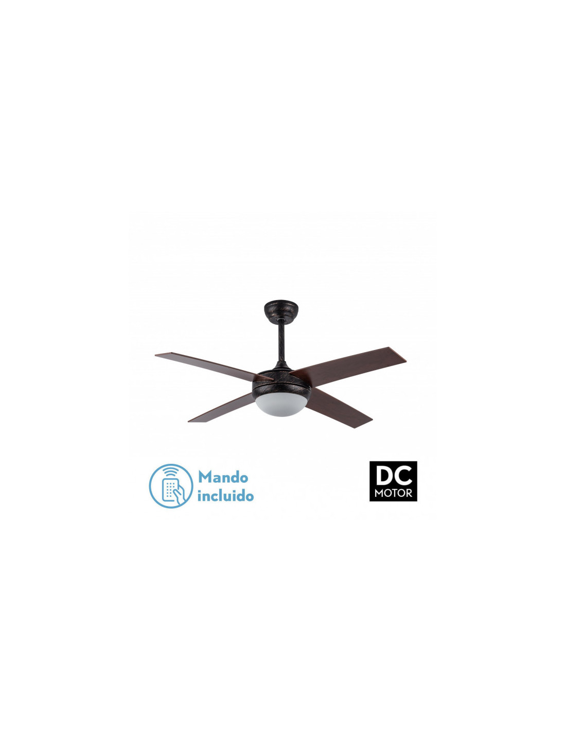 Ventilador Dc Ciro 2xe27 Marron Rustico 4 Aspas Nogal 35/45x116,8d Remoto Y Temporizador