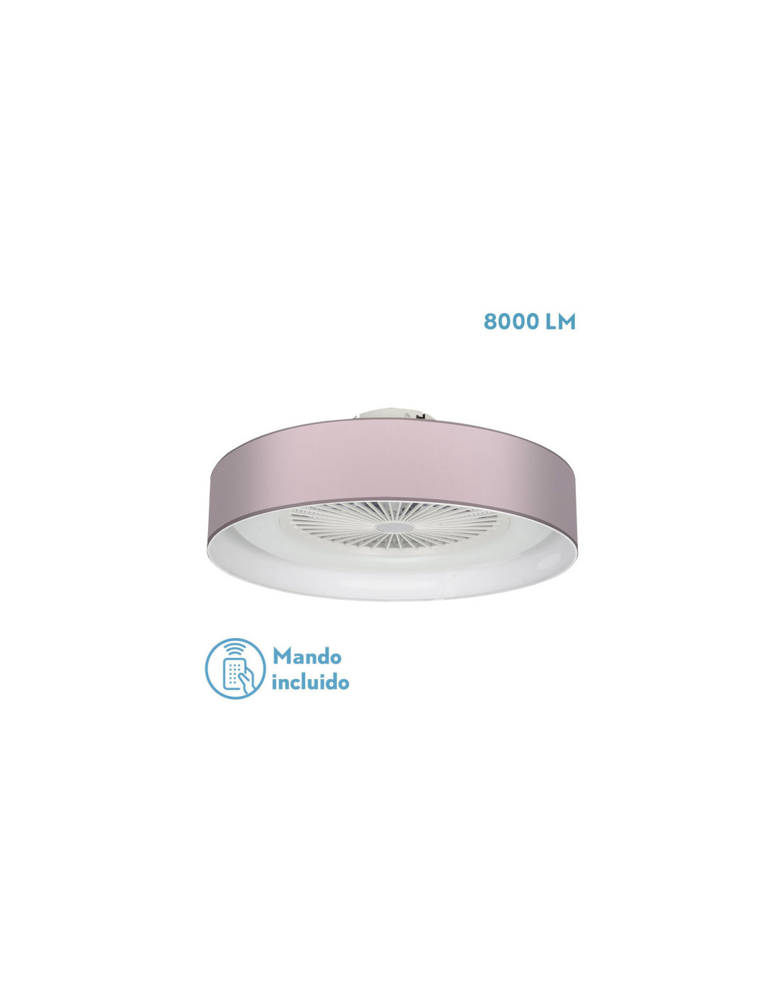 Ventilador serie IBOR de color BLANCO. Con ventilador de la serie PERI. Realizado en metal, policarbonato y una pantalla de textil de color ROSA. Diseño moderno, con 5 aspas integradas en su estructura y 3 velocidades ajustables. Posee TECNOLOGÍA LED INTEGRADA con 72 watios de potencia, 8000 lúmenes, 3 temperaturas de luz y REGULABLE EN INTENSIDAD, cálida, natural y blanco frío (3000ºk-4000ºk-6000ºk). Sus dimensiones son de 23x57,5x57,5 centímetros. Incluye MANDO A DISTANCIA, CON MEMORIA DE COLOR y TEMPORIZADOR 1/2 H. Muy decorativo y original, pudiéndose también combinar en dormitorios con el sobremesa a juego de esta misma serie. Modelo también disponible en color blanco/azul, blanco/lila y blanco/piedra.